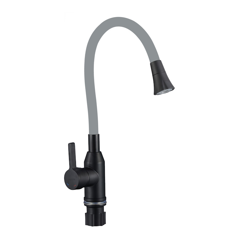 Закажите товар "Смеситель для кухни с гибким изливом и режимом душ Fmark FS8277H-04, черный/серый"