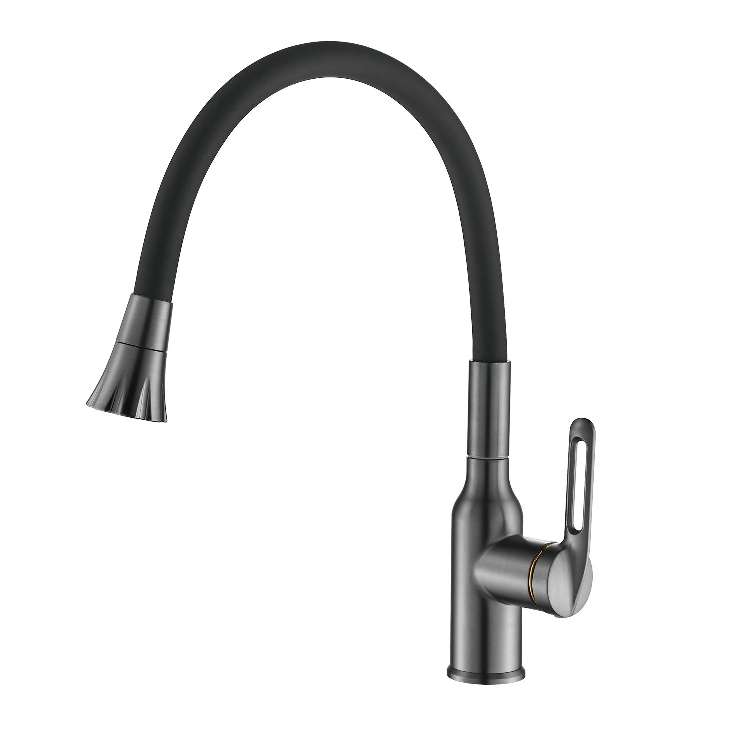 Смеситель для кухни с гибким изливом Raffine F303T-3, оружейная сталь