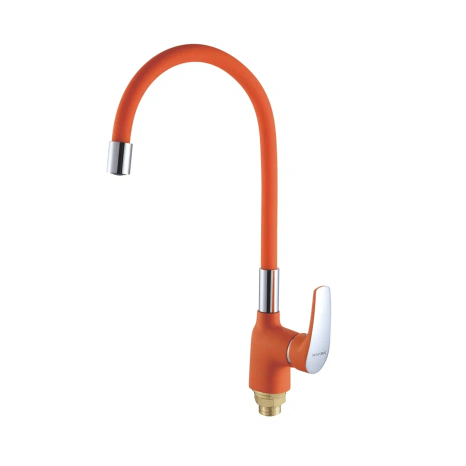 Смеситель для кухни с гибким изливом Shevanik S443-4, оранжевый. Управление: рычажное. Вращение излива: да. Выдвижной излив: нет. Гибкий излив: да. Высота:36,5.