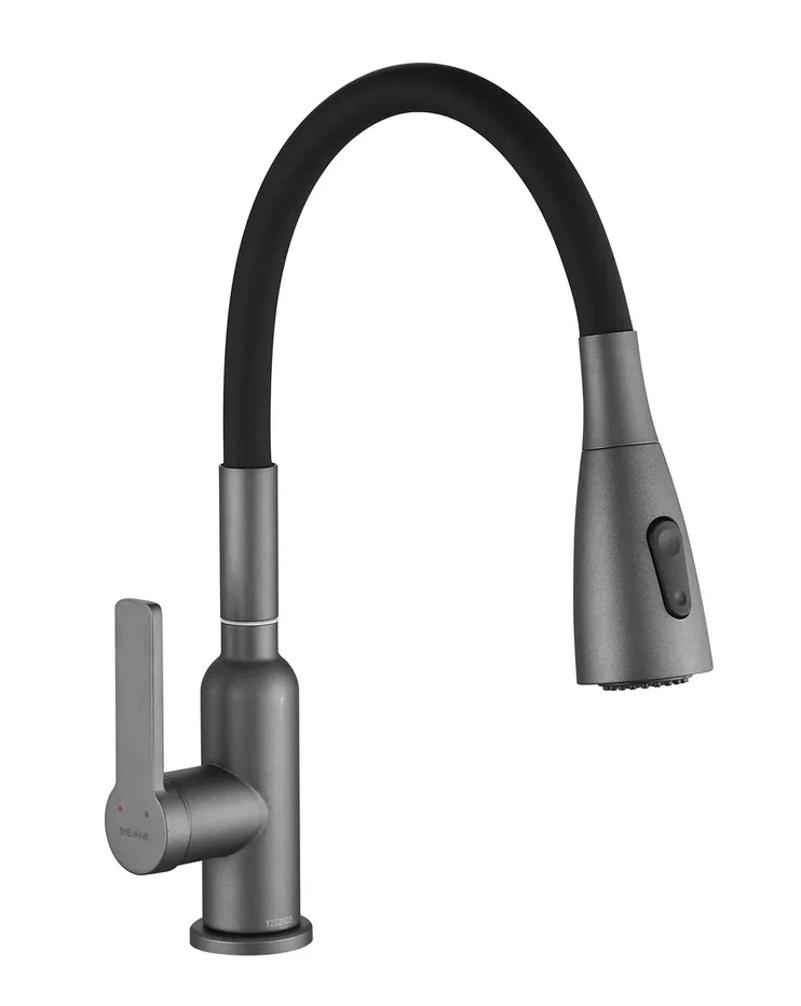 Закажите товар "Смеситель для кухни с гибким изливом Shevanik S843T-3, оружейная сталь/черный"