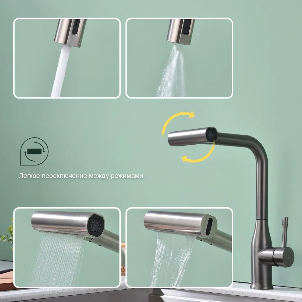 Закажите товар "Смеситель для кухни с мультифункциональным изливом Splenka S206.49.09, графит"
