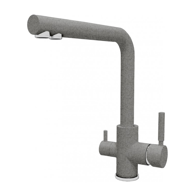 Смеситель АКЦЕНТ, цвет Базальт  (ACCENT Basalt). Элегантное и функциональное решение для Вашей кухни. Встроенный канал для питьевой воды облегчает процесс фильтрации и подачи чистой воды. Теперь у вас всегда будет доступ к чистой и свежей воде прямо из вашей мойки. Отдельный рычаг для подачи чистой воды от фильтра: подключается через отдельный шланг к системе фильтрации водопроводной воды, например марки Гейзер, Барьер и другие. Фильтр приобретается отдельно. Высокий поворотный излив обеспечивает удобство использования этого кухонного смесителя. Благодаря высокому корпусу и немаркому покрытию, смеситель удобен в использовании и прост в уходе. Высота крана для кухни Dr.Gans позволяет легко наполнять большие кастрюли, высокие вазы, а также мыть посуду при большой заполненности мойки. Прочный материал, из которого выполнен данный кухонный смеситель, обеспечивает долговечность изделия даже при интенсивной эксплуатации. Керамический картридж диаметром 35 мм обеспечивает надежность и плавность хода ручки управления подачей воды. Антиизвестковый аэратор помогает в экономии воды. Внутри аэратора воздух смешивается с водой, что образует насыщенную пузырьками струю, которая рассеивается на множество мелких потоков. Это делает струю более мягкой и объёмной, снижает разбрызгивание воды. Простота монтажа и надежность соединения гарантируют удобство установки и долгий срок службы. Гибкая подводка в комплекте. Выбирайте качество и комфорт вместе с нашим смесителем для кухни!