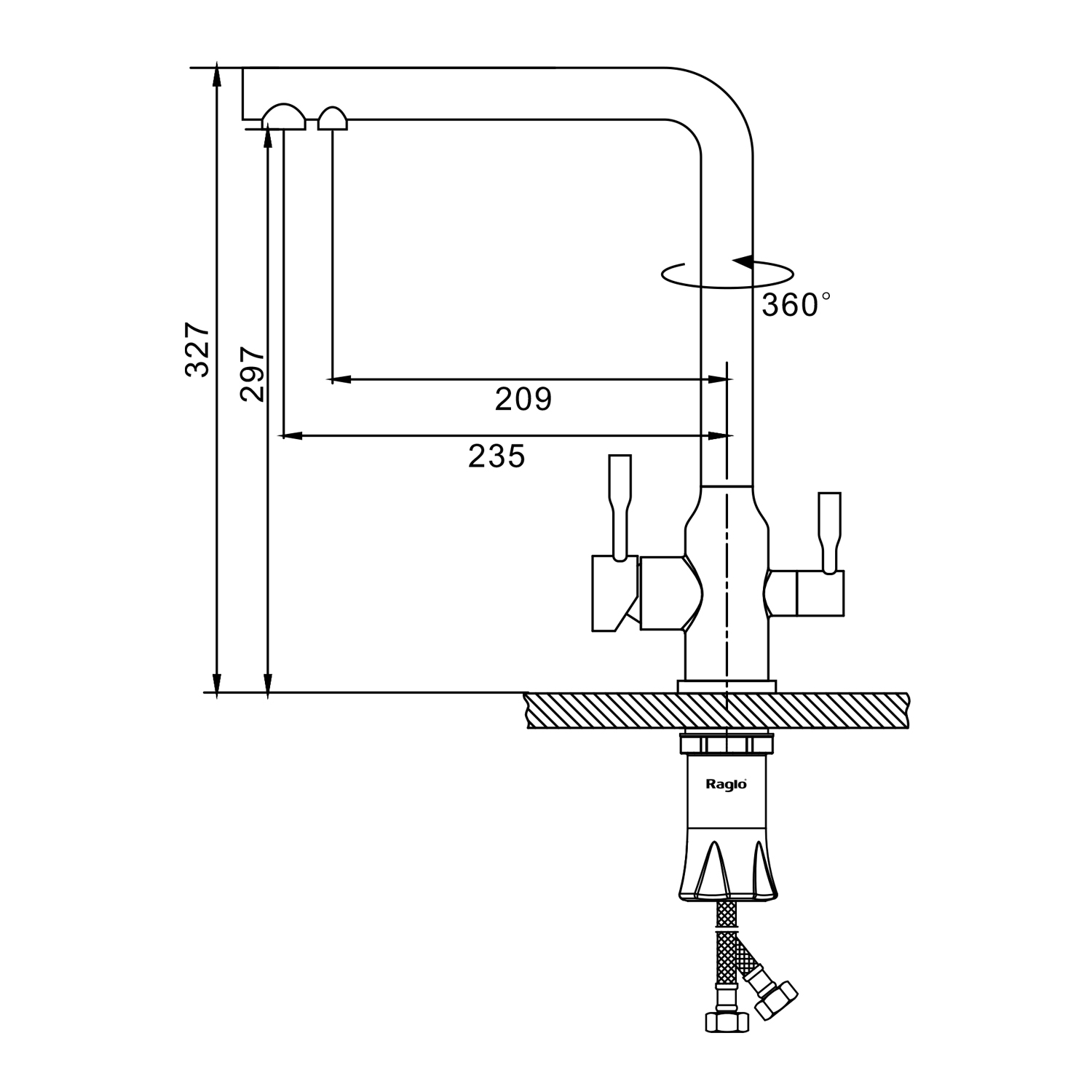 Закажите товар "Смеситель для кухни с подключением фильтра Raglo R81.61.05, сатин"