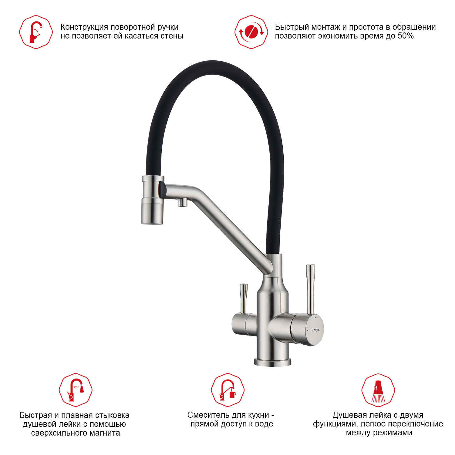 Закажите товар "Смеситель для кухни с подключением фильтра Raglo R81.62.05, сатин"
