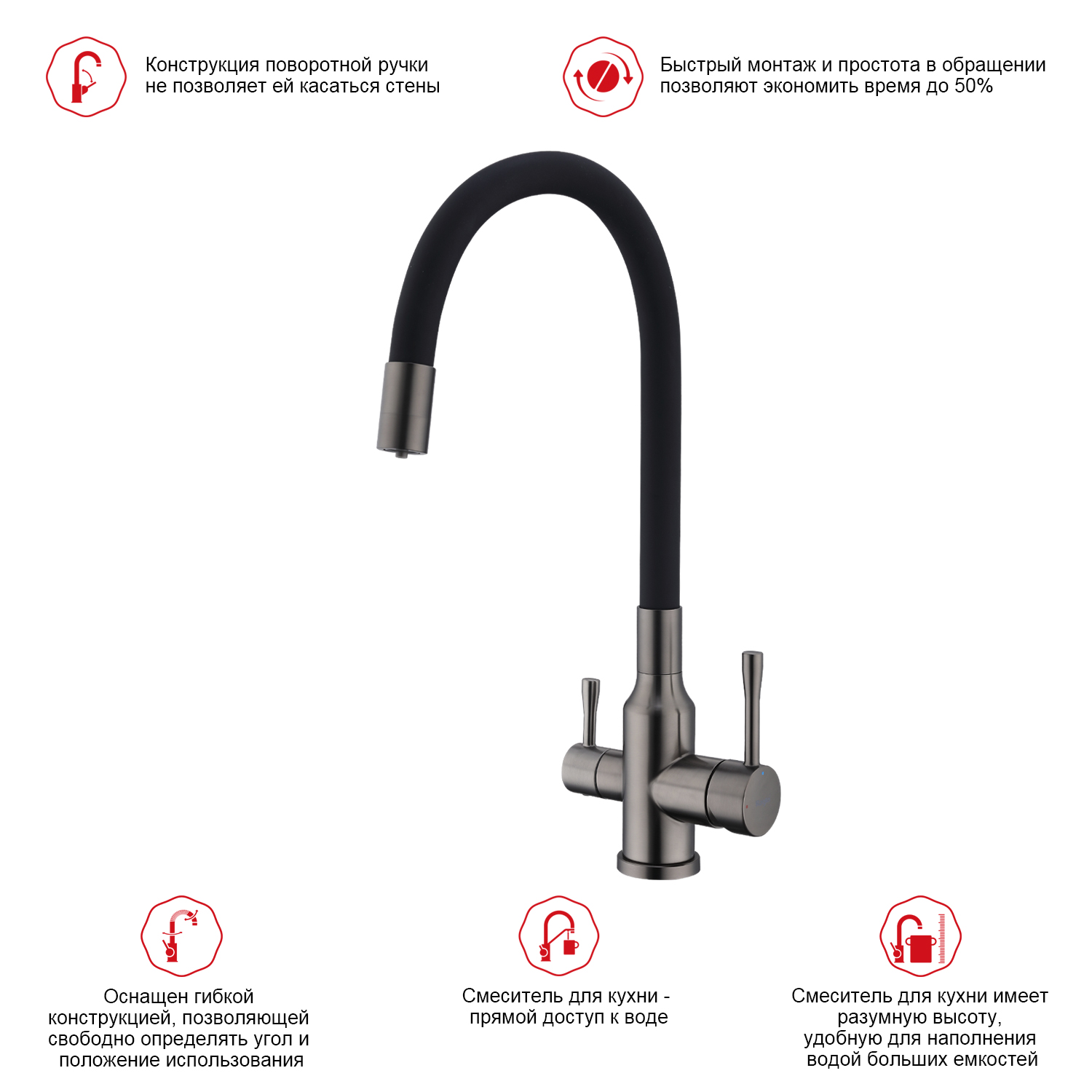 Закажите товар "Смеситель для кухни с подключением фильтра Raglo R81.64.09, графит"