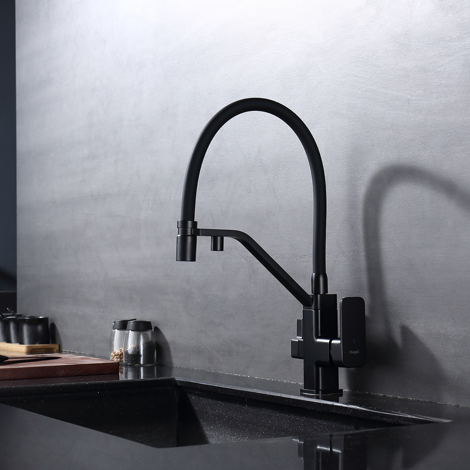 Закажите товар "Смеситель для кухни с подключением фильтра Raglo R85.62.06, черный"