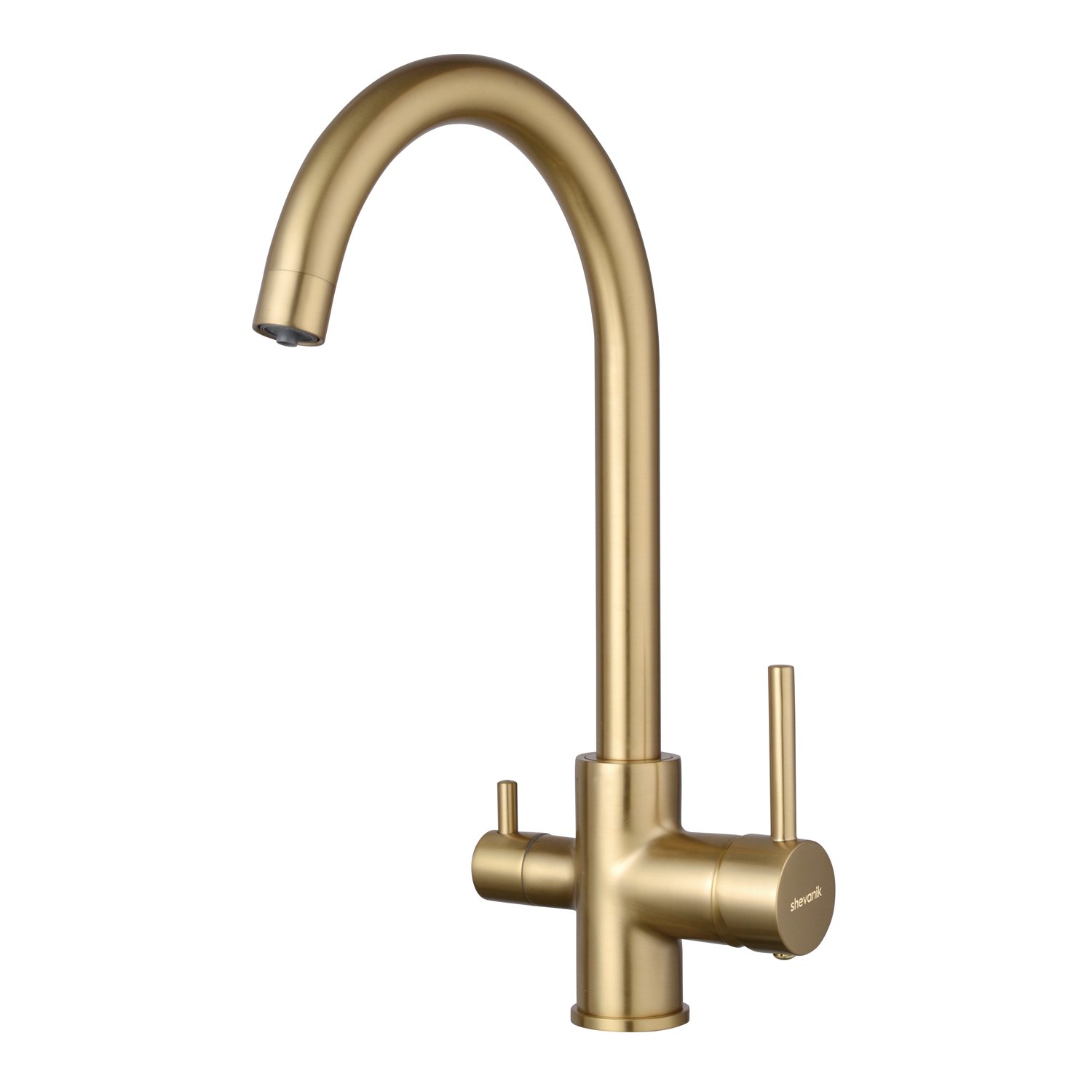 Закажите товар "Смеситель для кухни с подключением фильтра Shevanik S128G, золотой сатин"