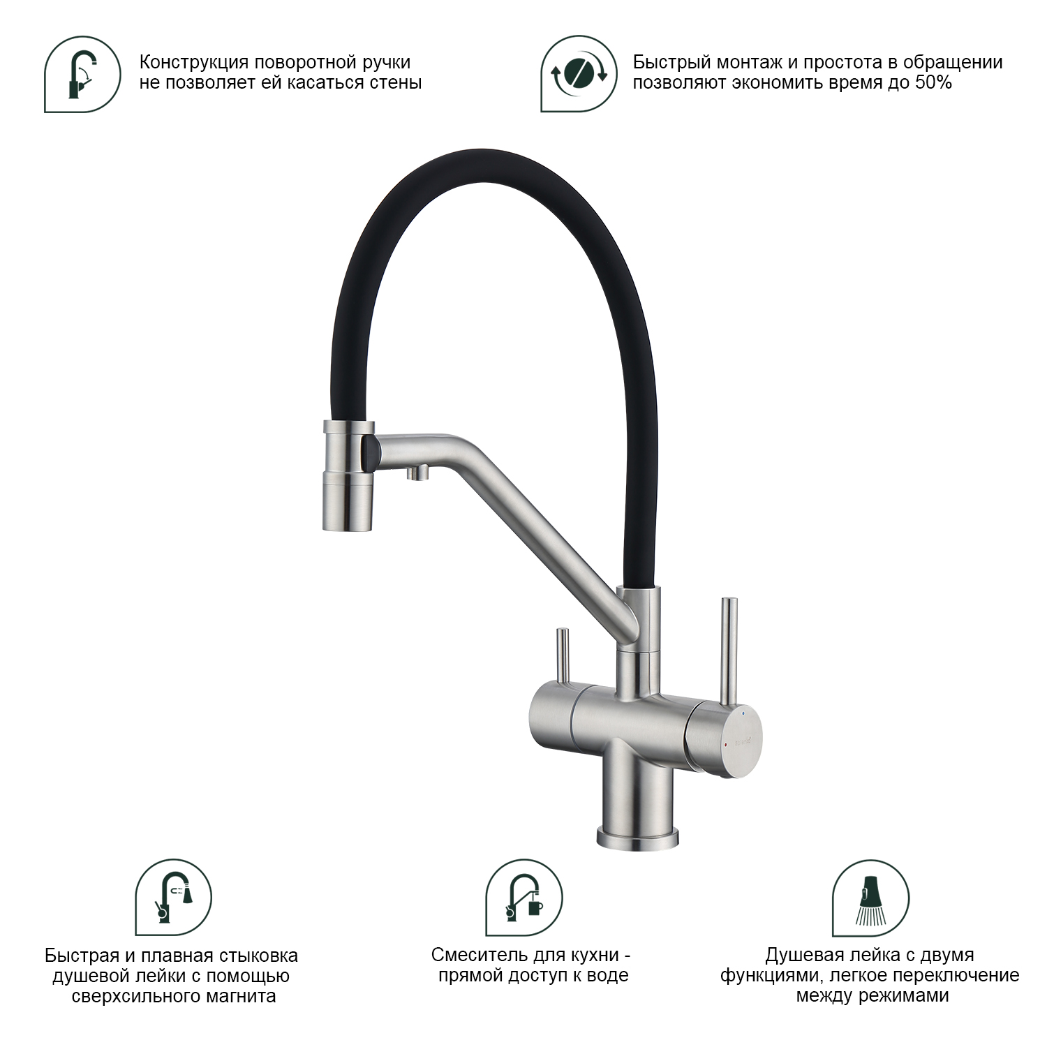 Закажите товар "Смеситель для кухни с подключением фильтра Splenka S70.62.05, сатин"