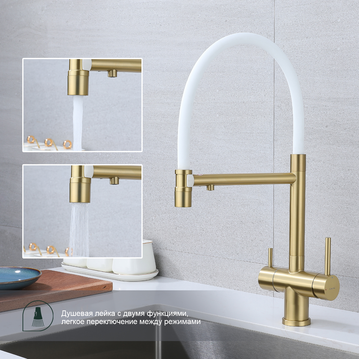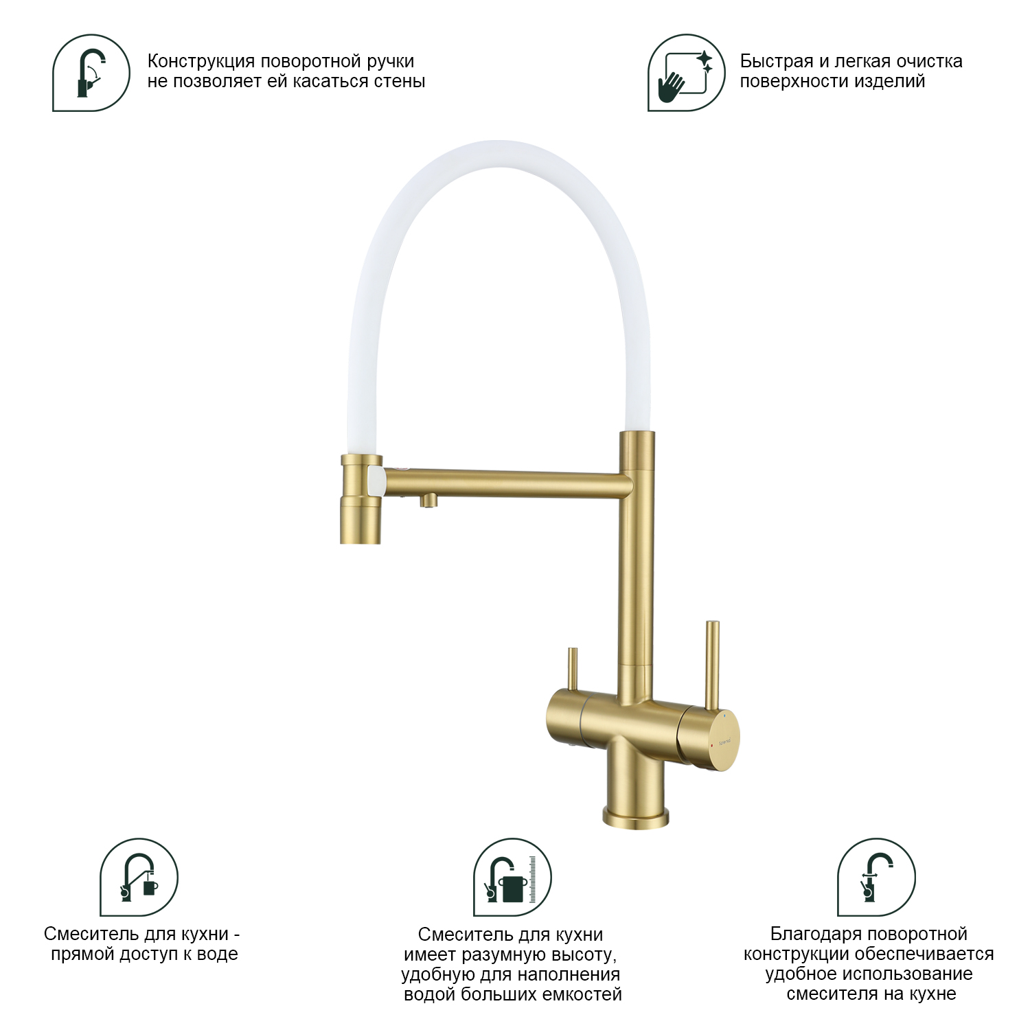 Закажите товар "Смеситель для кухни с подключением фильтра Splenka S70.63.03, золотой сатин"