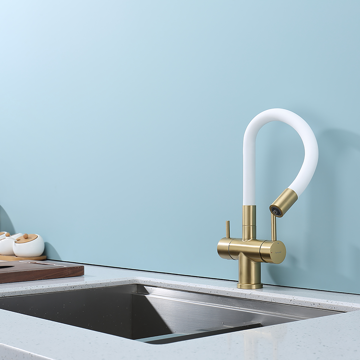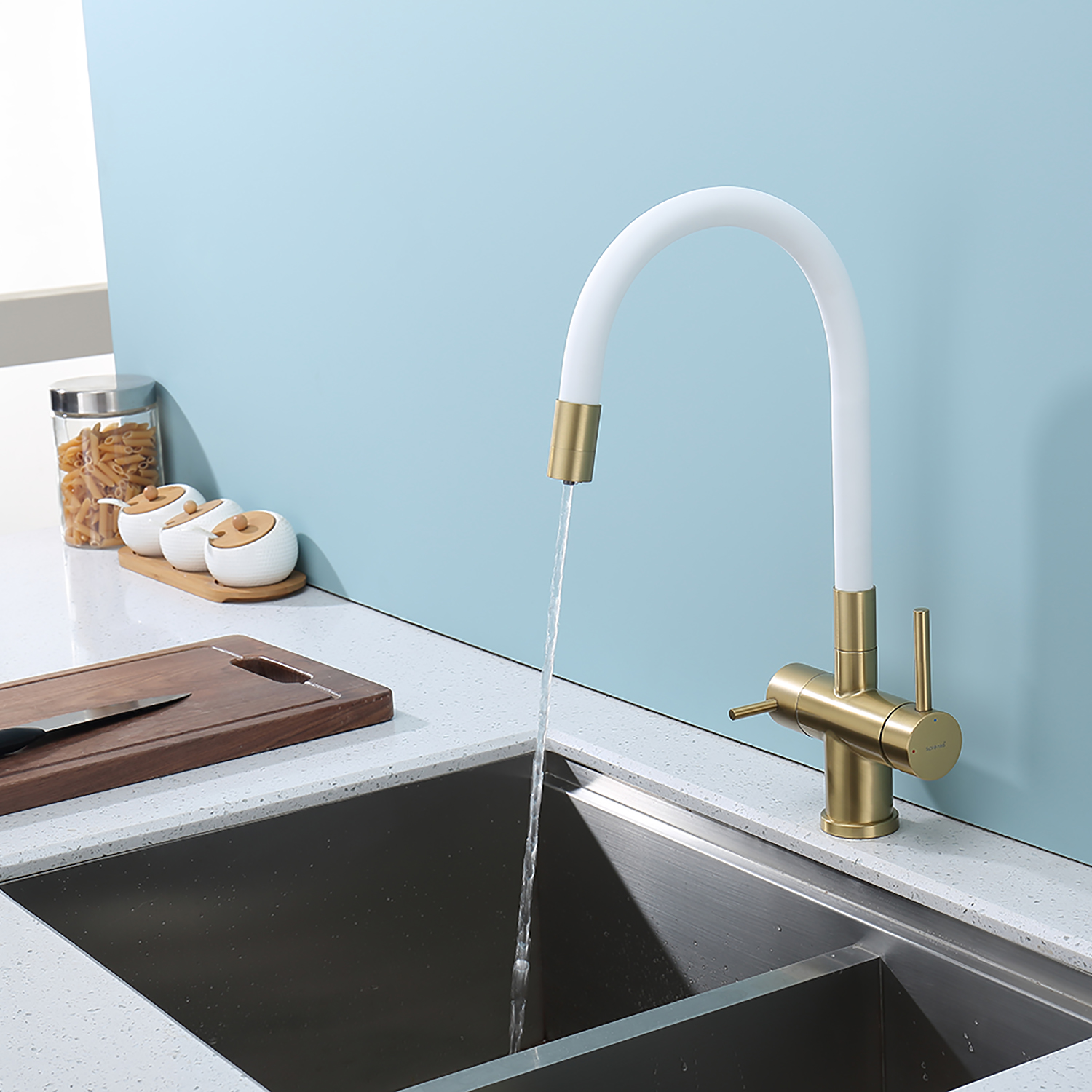 Закажите товар "Смеситель для кухни с подключением фильтра Splenka S70.64.03, золотой сатин"