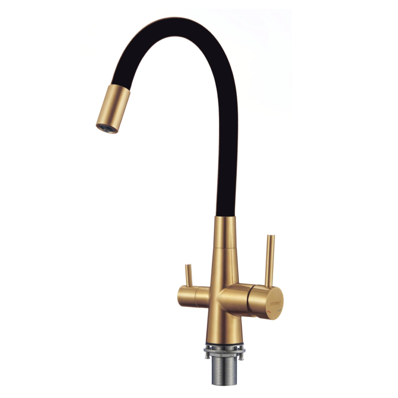 Смеситель для кухни с подключением к фильтру Fmark FS1062-C01, матовое золото. Гарантийный срок: 5 лет. Поверхность: матовая. Материал: нержавеющая сталь. Монтаж: на мойку, на столешницу.