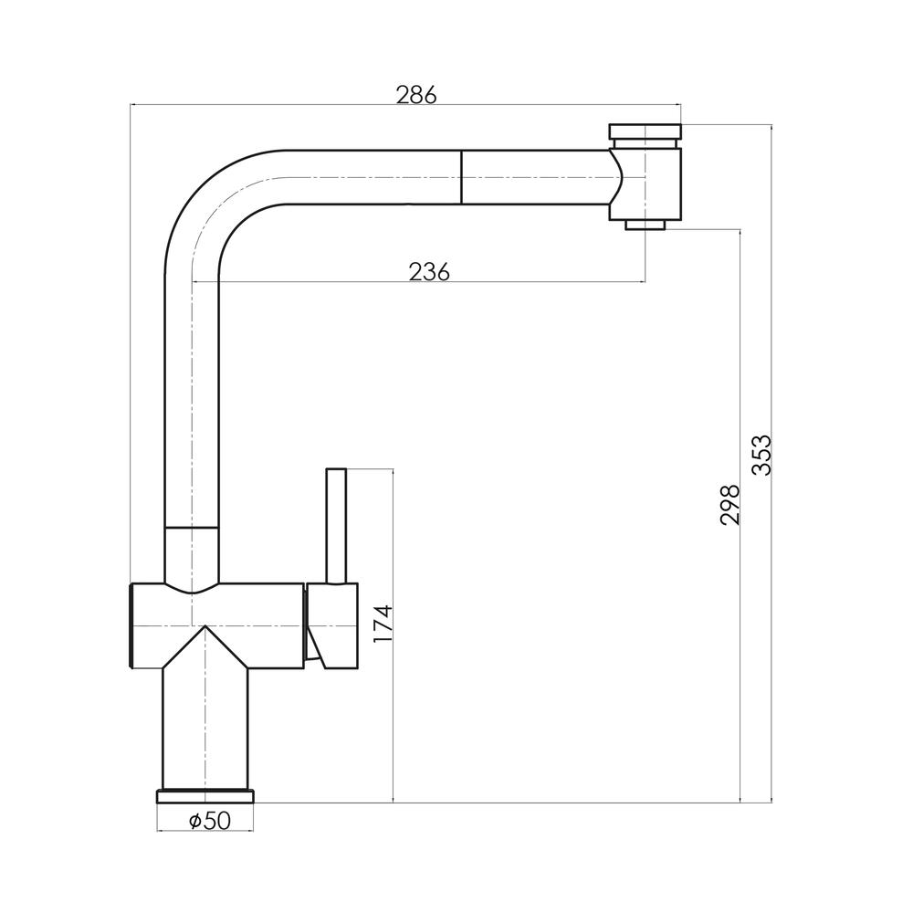 Смеситель однорычажный с выдвижным изливом. Материал – нержавеющая сталь AISI 304. Поворотный излив. Керамический картридж 35мм. Гибкая подводка. Два режима напора воды – душ/струя.