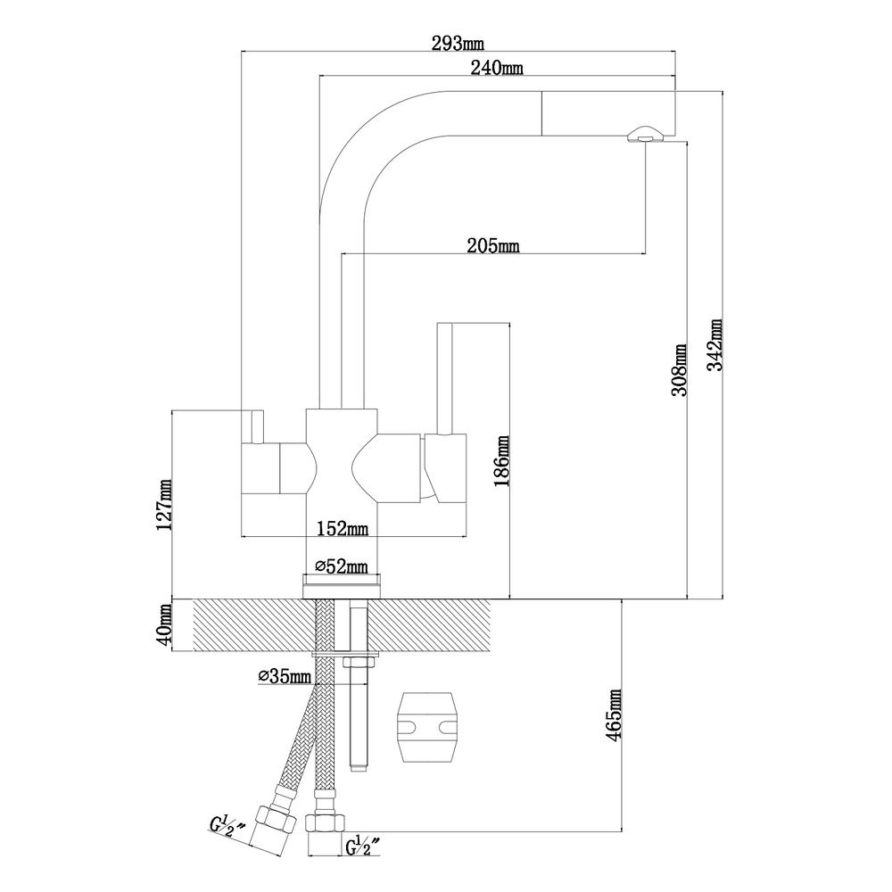 Материал - нержавеющая сталь. Поворотный выдвижной излив. Керамический картридж 35мм. Гибкая подводка. Выдвижной излив. С подключением под питьевую воду.