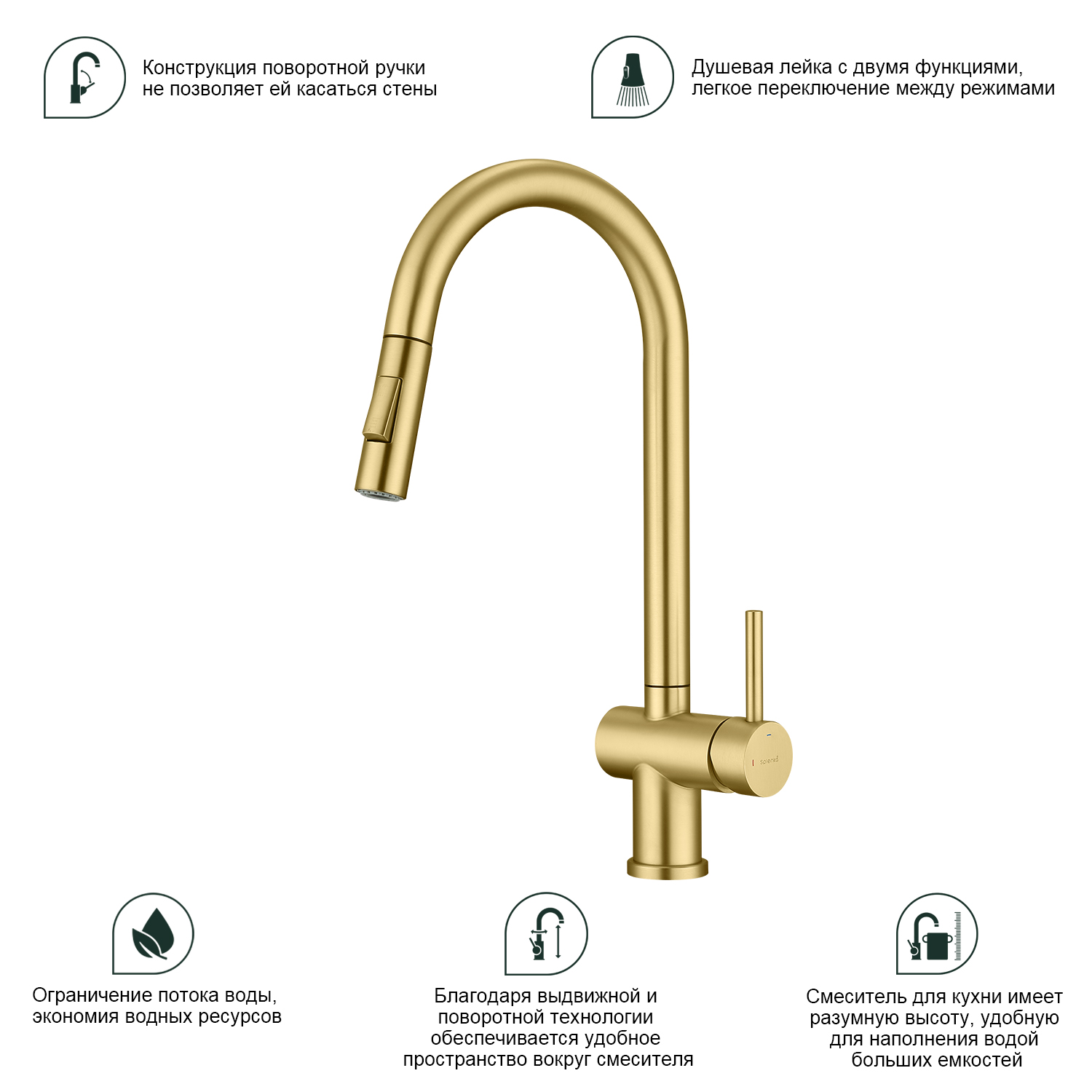 Закажите товар "Смеситель для кухни с выдвижным изливом Splenka S204.49.03, золотой сатин"