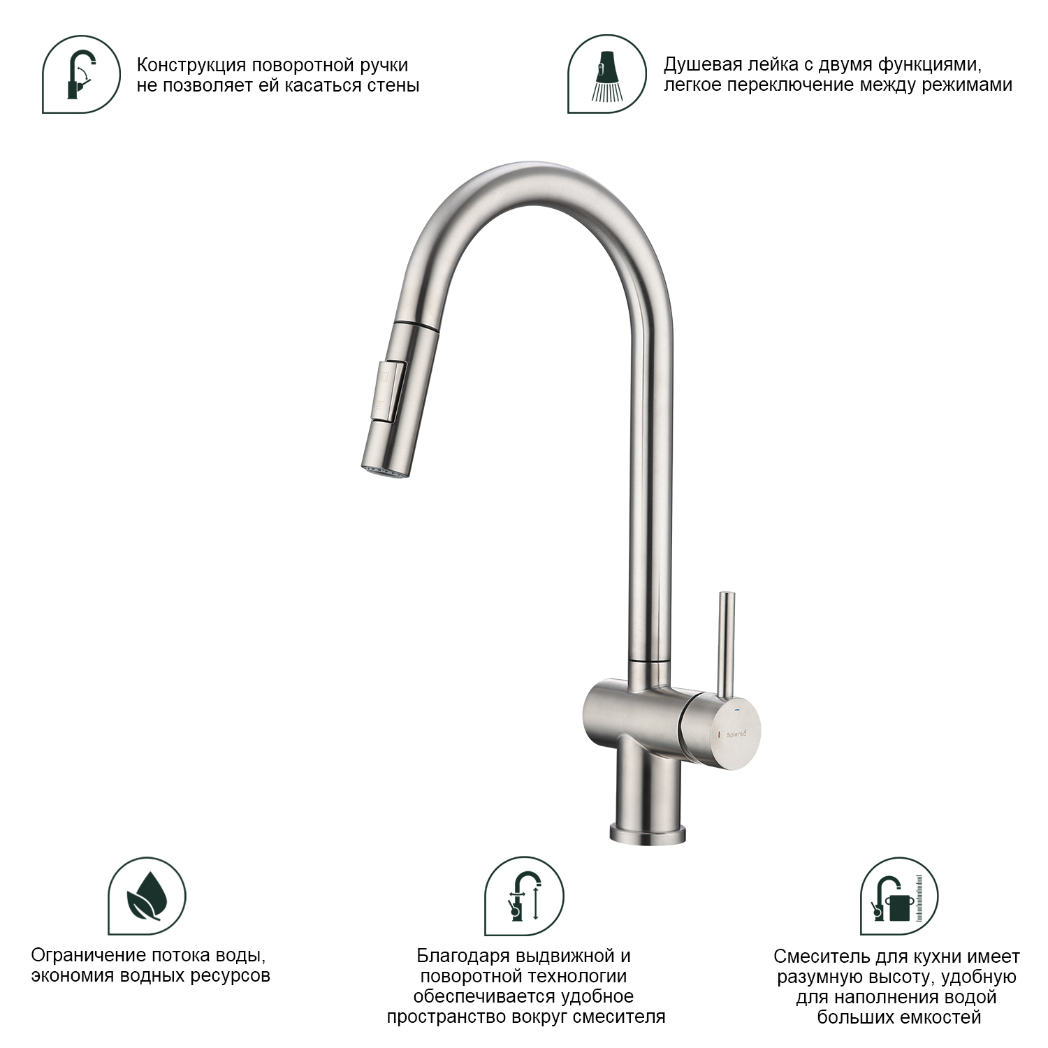 Закажите товар "Смеситель для кухни с выдвижным изливом Splenka S204.49.05, сатин"