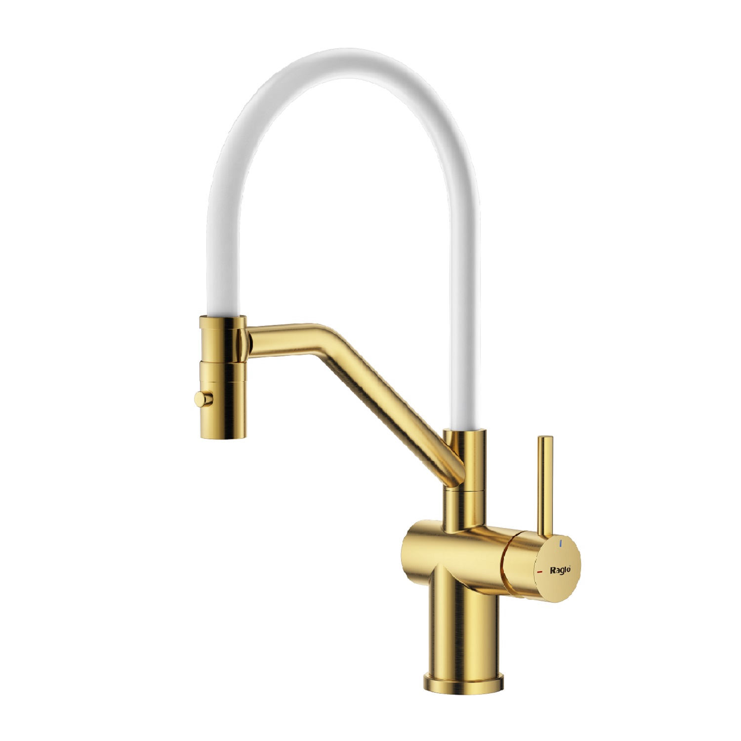 Закажите товар "Смеситель для кухни со съемным изливом на магните Raglo R86.41.03, золотой сатин"