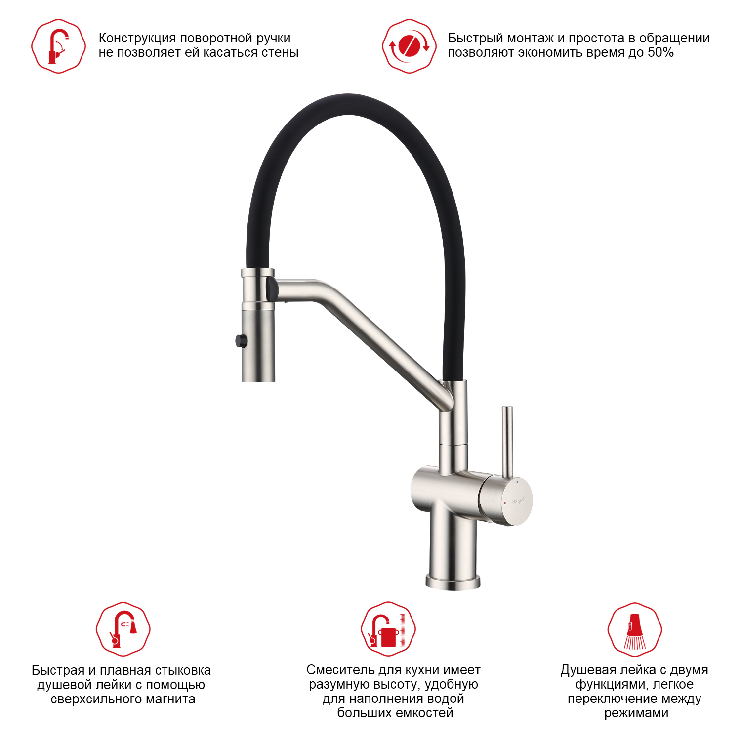 Закажите товар "Смеситель для кухни со съемным изливом на магните Raglo R86.41.05, сатин"