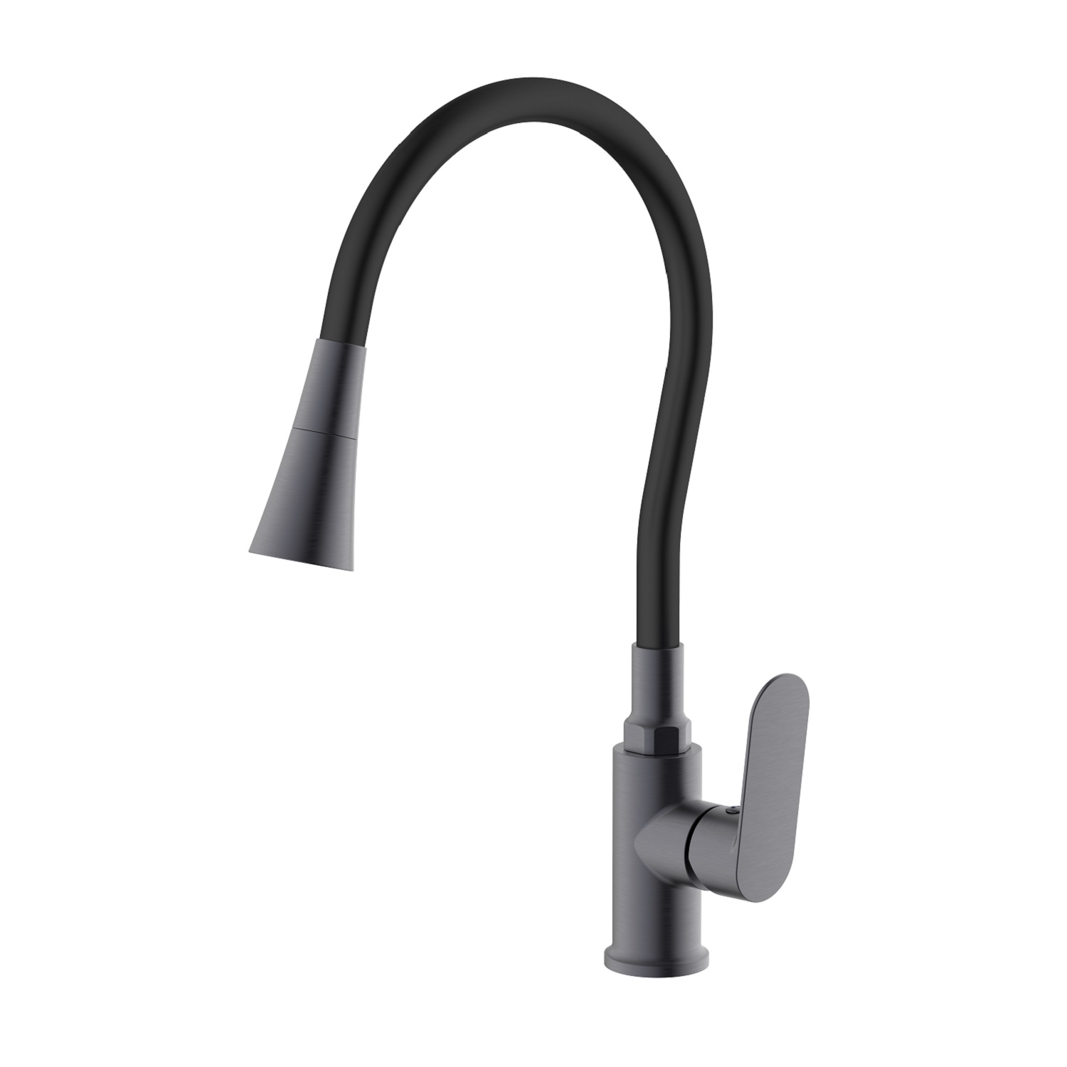 Смеситель для кухни Splenka S41.43.09 идеально подходит для кухонной мойки, раковины любого типа. Смеситель имеет 2 режима: поток воды и душ. Кран с гибким изливом имеет необычный внешний вид и особую конструкцию. С помощью гибкого шланга можно самостоятельно регулировать глубину выноса и высоту излива, что позволит избежать лишнего разбрызгивания воды. Также с помощью силиконового излива не составит труда добраться до всех мест в мойке, а также упрощает мытье посуды и продуктов. Стильный латунный смеситель имеет свойство шумоподавления.