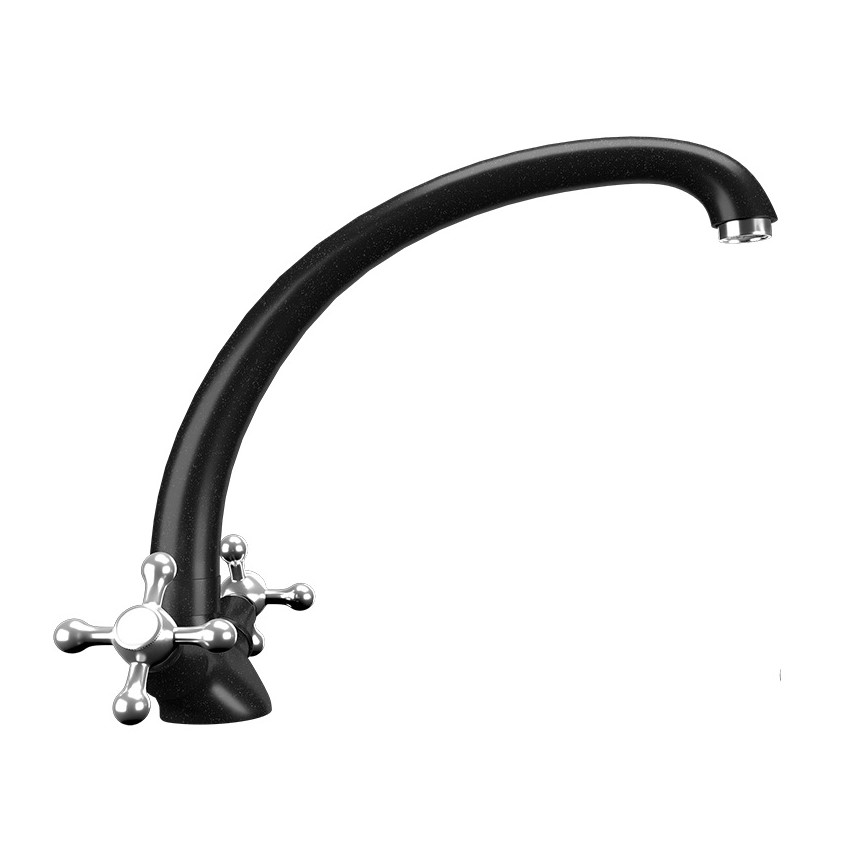 ULGRAN U-013 - классический кухонный двухрычажный смеситель с высоким поворотным изливом. Материал корпуса выполнен из высококачественной латуни, а окрашивание под "искусственный камень" в цвет мойки ULGRAN выполняется на собственном производстве, что позволяет идеально попасть в фирменный цвет ULGRAN. В качестве запорного клапана используется кран-букса с керамическими пластинами,  на подвижные части которых нанесена специальная невымываемая силиконовая смазка.  В свою очередь, сами керамические пластины изготовлены из 96% оксида алюминия, что, в сочетании с высоким качеством шлифовки обеспечивает долговечность, надежность, плавность хода рукоятки.  Смеситель оборудован съемным пластиковым аэратором для экономии воды  и поворотным изливом на 360 градусов. В комплектацию входят:  кран-букса с керамическими пластинами, гибкая подводка 450 мм, комплект крепежных элементов, технический паспорт и гарантийный талон.   Заводская гарантия составляет 3 года на материал корпуса,  1 год на комплектующие к смесителю и 1 год на материал покрытия.
