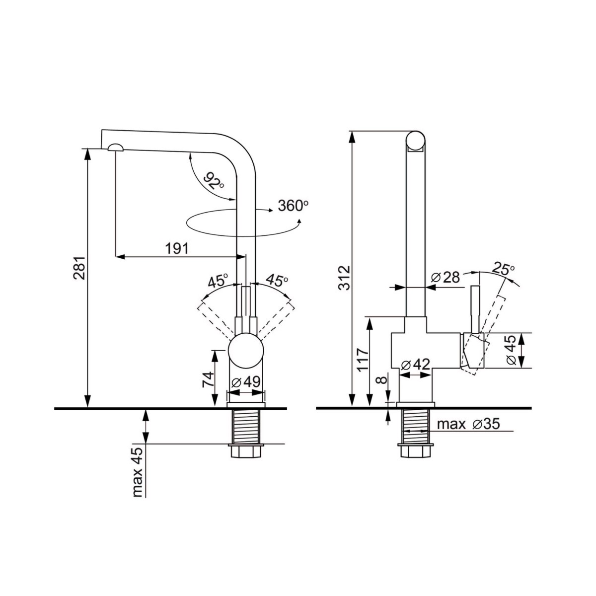 | Высота излива, см | 28-1 |