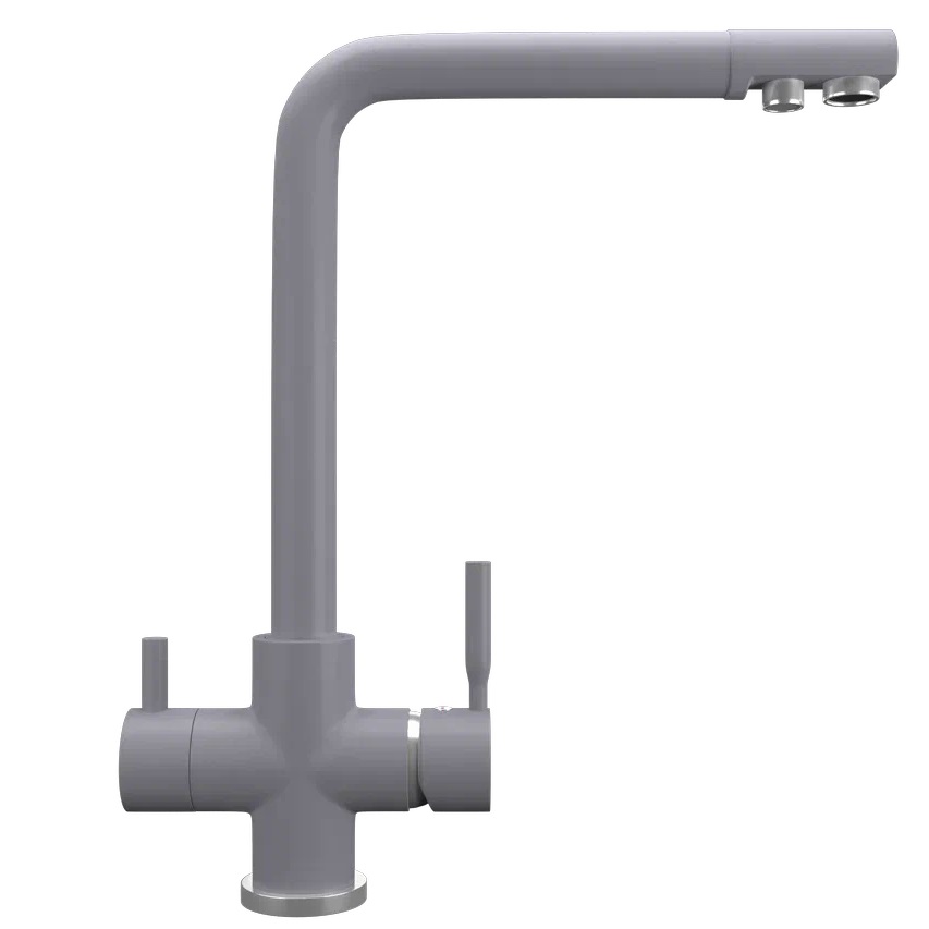 ULGRAN Quartz UQ-016 - высокоэргономичный кухонный смеситель с дополнительным краном для подключения фильтрованной воды, оснащенный кран-буксой с керамическими пластинами. Реализован тройной подвод воды через один излив: холодная, горячая и фильтрованная. Переход с одного подвода на другой производится поворотом рычага. Набор для соединения с фильтром входит в комплект . Система фильтрации приобретается дополнительно и монтируется под мойку, специальный индикатор сообщает о необходимости замены картриджа. Материал корпуса выполнен из высококачественной латуни, а окрашивание под "искусственный камень" в цвет мойки ULGRAN Quart выполняется на собственном производстве, что позволяет идеально попасть в фирменный цвет ULGRAN Quart. В качестве керамического картриджа используется известный бренд Wanhai диаметром 35 мм с высокой пропускной способностью в 500 тысяч циклов "открывания-закрывания".  На подвижные части картриджа  Wanhai  нанесена специальная невымываемая силиконовая смазка, а керамические пластины изготовлены из 96% оксида алюминия, что, в сочетании с высоким качеством шлифовки обеспечивает долговечность, надежность, плавность хода рукоятки.  Смеситель оборудован съемным пластиковым аэратором для экономии воды  и поворотным изливом на 360 градусов. В комплектацию входят:  керамический картридж  Wanhai, гибкая подводка, комплект крепежных элементов,  кран-букса с керамическими пластинами для дополнительного излива для фильтрованной воды, набор для подсоединения фильтра питьевой воды (гибкая подводка + переходник-цанга), технический паспорт и гарантийный талон. Заводская гарантия составляет 3 года на материал корпуса, 1 год на комплектующие к смесителю и 1 год на материал покрытия.