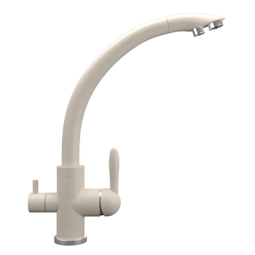 ULGRAN Quartz UQ-017 - современный кухонный смеситель с дополнительным краном для подключения фильтрованной воды, оснащенный кран-буксой с керамическими пластинами. Реализован тройной подвод воды через один излив: холодная, горячая и фильтрованная. Переход с одного подвода на другой производится поворотом рычага. Набор для соединения с фильтром входит в комплект . Система фильтрации приобретается дополнительно и монтируется под мойку, специальный индикатор сообщает о необходимости замены картриджа. Материал корпуса выполнен из высококачественной латуни, а окрашивание под "искусственный камень" в цвет мойки ULGRAN Quartz выполняется на собственном производстве, что позволяет идеально попасть в фирменный цветULGRAN Quartz. В качестве керамического картриджа используется известный бренд Wanhai диаметром 35 мм с высокой пропускной способностью в 500 тысяч циклов "открывания-закрывания".  На подвижные части картриджа  Wanhai  нанесена специальная невымываемая силиконовая смазка, а керамические пластины изготовлены из 96% оксида алюминия, что, в сочетании с высоким качеством шлифовки обеспечивает долговечность, надежность, плавность хода рукоятки.  Смеситель оборудован съемным пластиковым аэратором для экономии воды  и поворотным изливом на 360 градусов. В комплектацию входя:  керамический картридж  Wanhai, гибкая подводка, комплект крепежных элементов,  кран-букса с керамическими пластинами для дополнительного излива для фильтрованной воды, набор для подсоединения фильтра питьевой воды (гибкая подводка + переходник-цанга), технический паспорт и гарантийный талон. Заводская гарантия составляет 3 года на материал корпуса, 1 год на комплектующие к смесителю и 1 год на материал покрытия.
