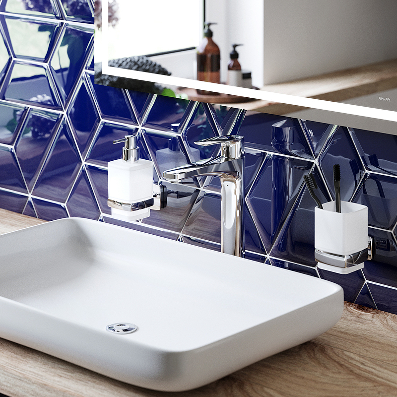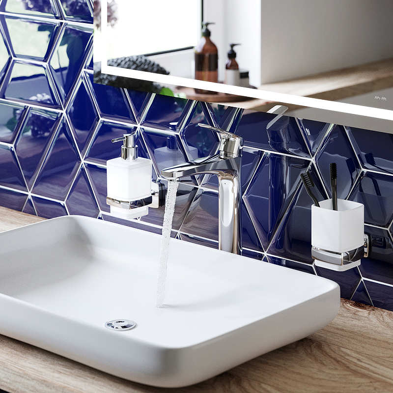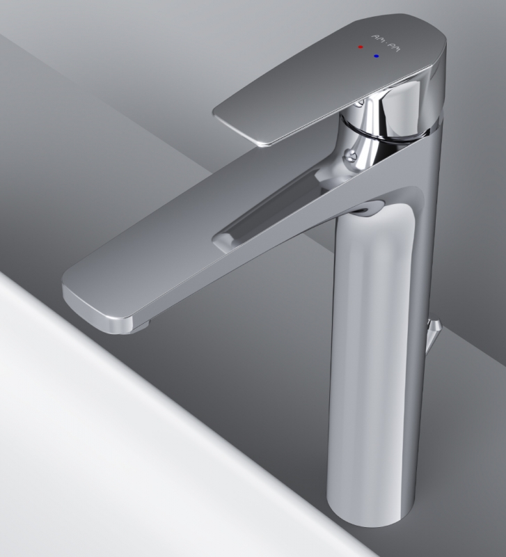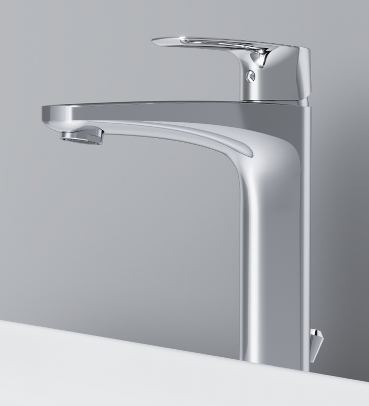 Высокий излив придает смесителю утонченный вид и идеально подойдет для раковины с глубокой чашей, а благодаря обширной зоне движения ручки управлять температурой воды еще проще.
