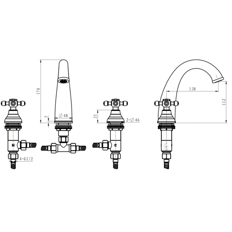 В комплекте поставки: смеситель, гибкая подводка G1/2, крепежный комплект.