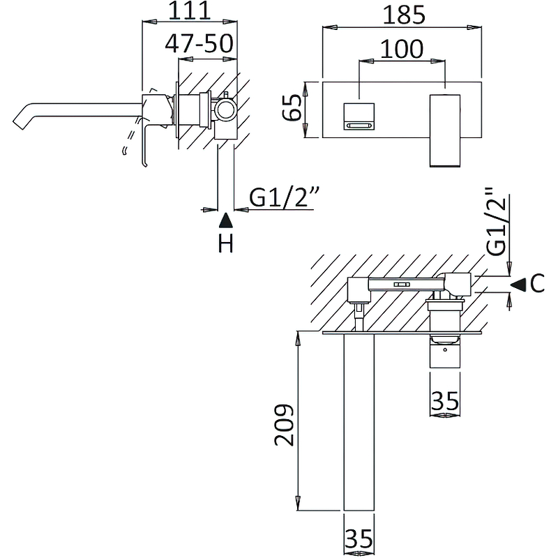 | Длина излива | |