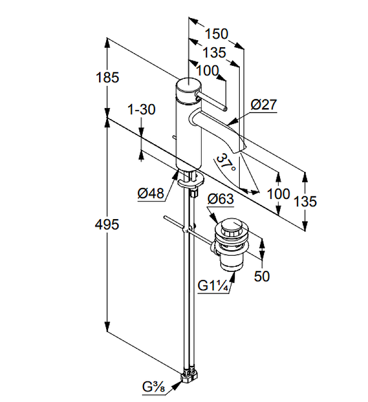 | Длина излива | |