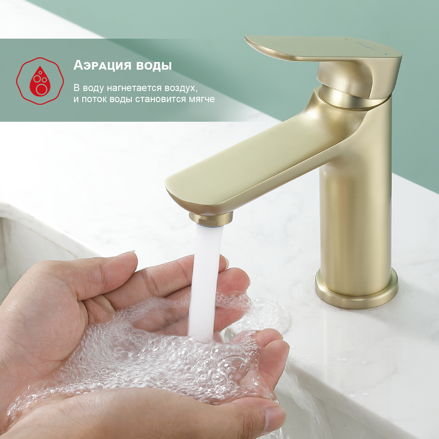 Закажите товар "Смеситель для раковины Raglo R03.10.03, золотой сатин"