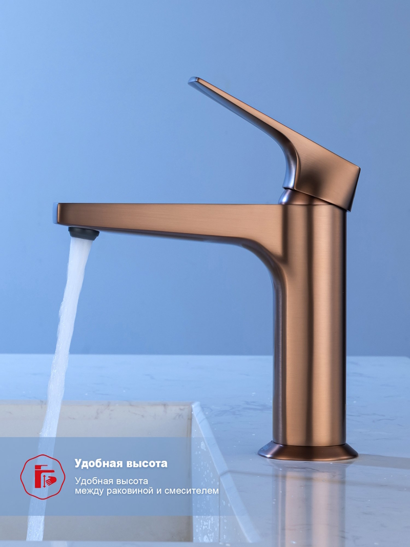 Смеситель для раковины Raglo R07.10.33 в цвете матовая медь — это идеальное сочетание современного минималистичного дизайна и высокого качества. Изготовленный из высококачественной латуни, этот кран для умывальника обеспечивает долговечность и надёжность в использовании, а также устойчивость к механическим повреждениям. Механизм смесителя для раковины основан на керамическом картридже с рычажным управлением, что гарантирует лёгкость и точность регулировки температуры и напора воды. Дизайн этого смесителя станет настоящим украшением вашей ванной комнаты, гармонично вписываясь в любой интерьер благодаря лаконичным формам и элегантным линиям. Излив этого смесителя для раковины фиксированный и оснащён аэратором, который способствует более равномерному и мягкому потоку воды. В комплекте со смесителем для умывальника идёт гибкая подводка со стандартным подключением 1/2", что упрощает процесс установки. Кран для раковины в ванную Raglo R07.10.33 — это идеальное сочетание современного дизайна, практичности и надёжности, которое превратит ежедневное умывание в приятный ритуал комфорта и уюта. • Материал - латунь • Цвет - матовая медь • Керамический картридж 35мм - R500.352 • Аэратор для водопроводной воды Neoperl® с функцией самоочистки - R540.24 • Гибкая подводка 60см - M10*1-Г1/2 • Крепежная гайка - R599.02