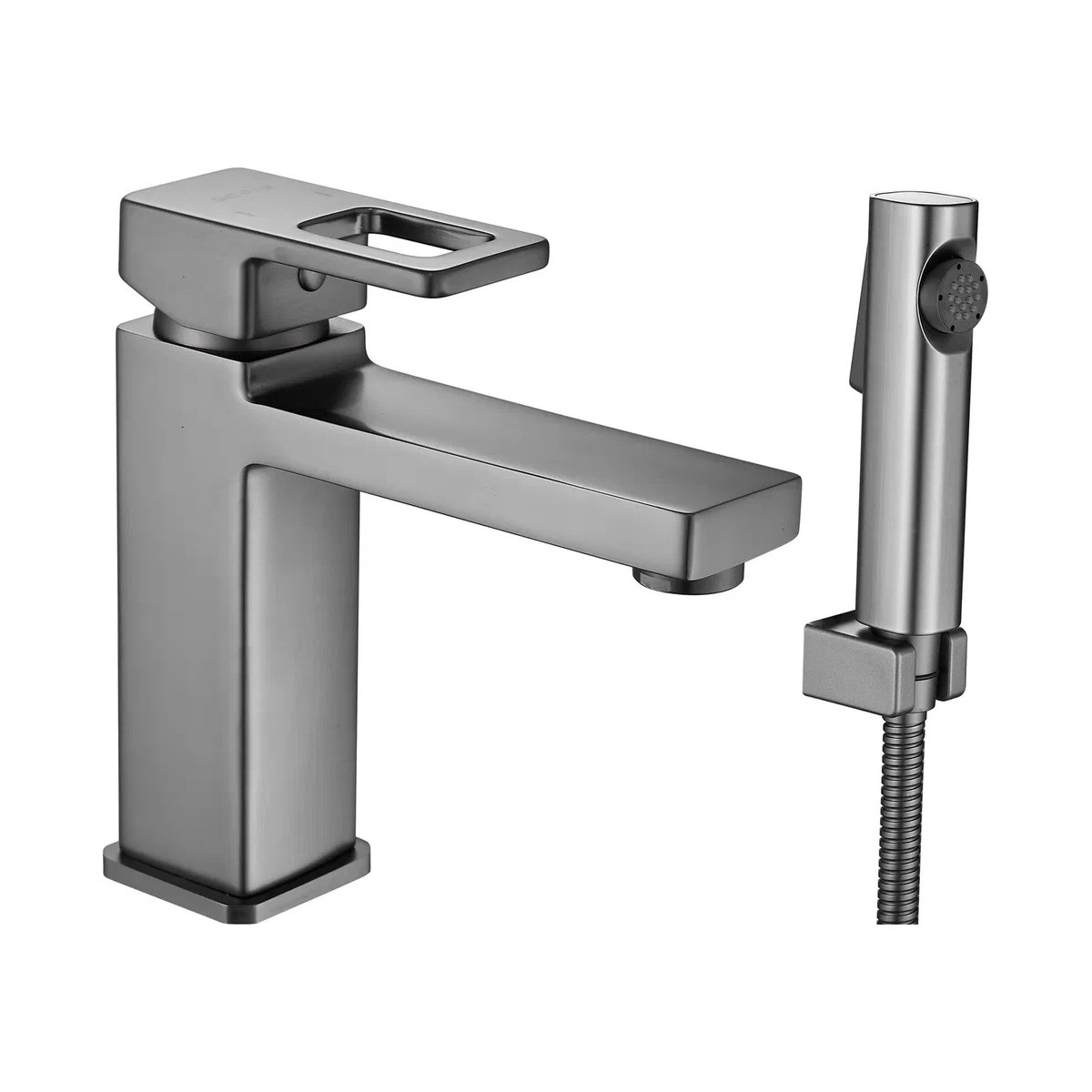Закажите товар "Смеситель для раковины с гигиеническим душем Shevanik S8271T, оружейная сталь"