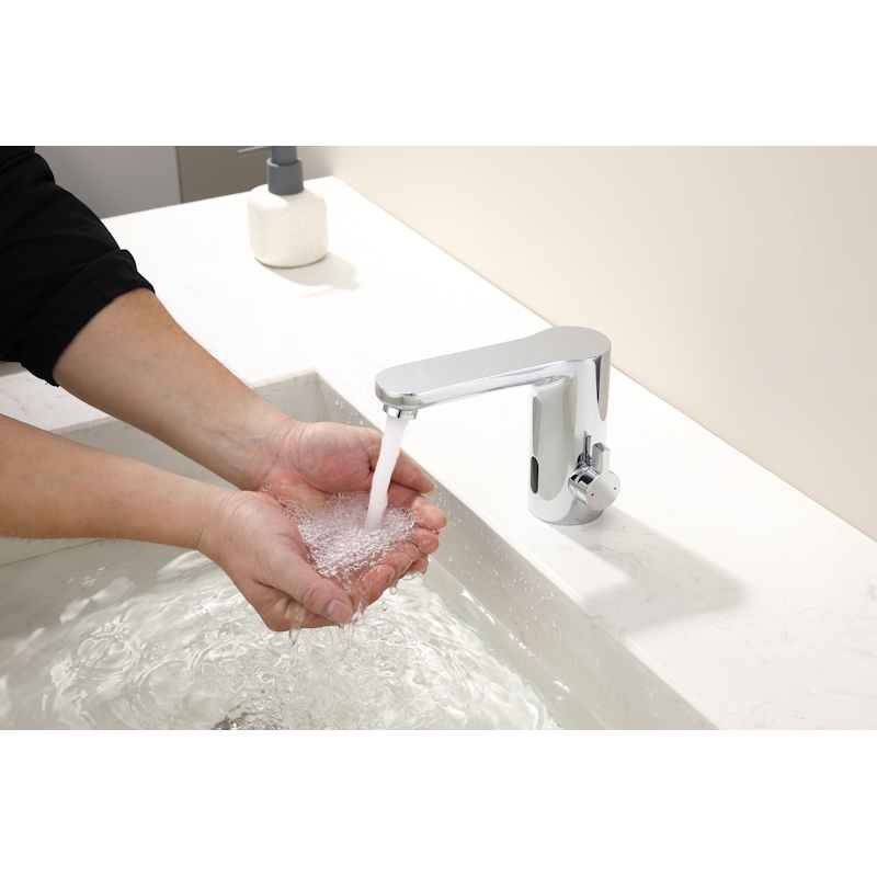 Смеситель для раковины сенсорный Raglo R50.17. Цвет хром. Сенсорный датчик - время срабатывания <0,5сек. Комбинированный блок питания 230V/4хАА. Клапан смешивания горячей и холодной воды с возможностью регулировки. Гибкая подводка 60 см в комплекте.