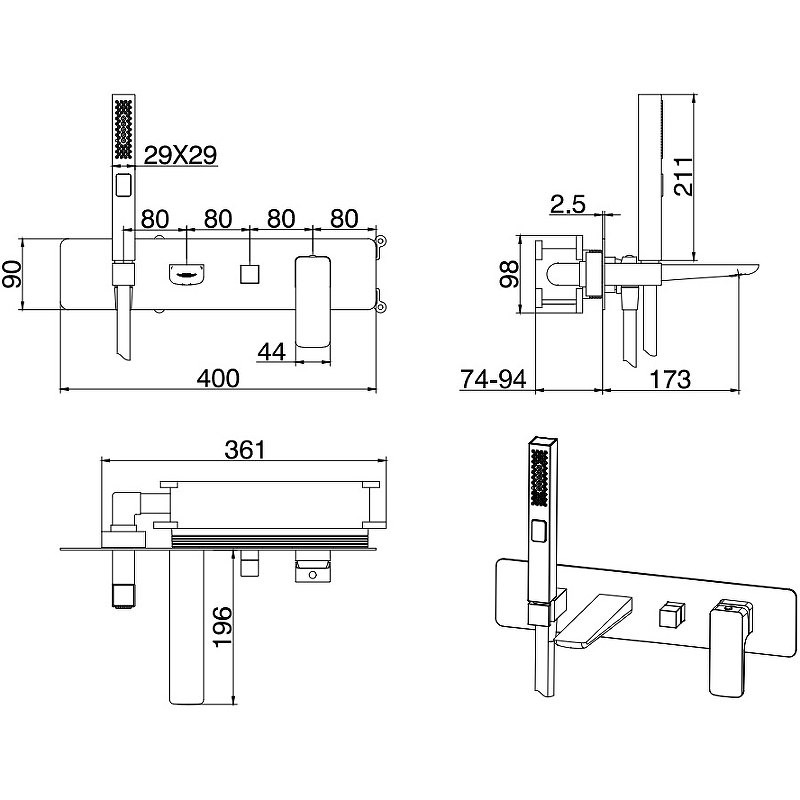 | Оснащение | С держателем для душа, с внутренней частью, с душевым гарнитуром, с аэратором |