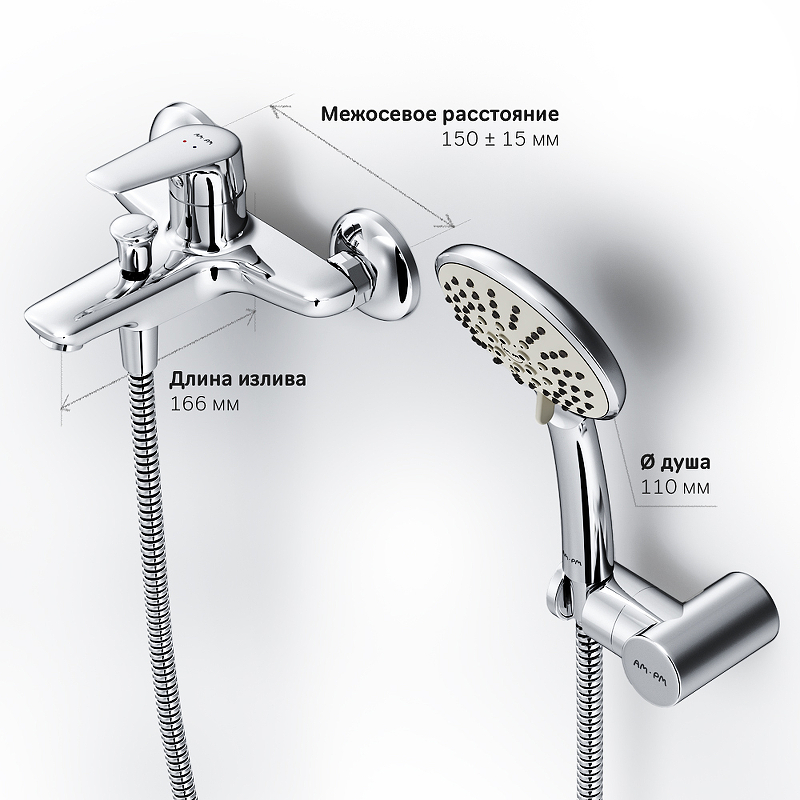 Смеситель для ванны AM.PM Joy F85E20000 с душевым набором - разработан с учетом ваших потребностей и особенностей различных пространств.