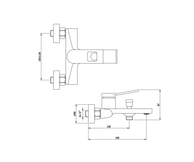 Смеситель, шланг, душевая лейка, держатель душевой лейки, эксцентрики, декоративные чашки.