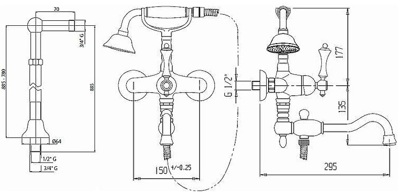 Закажите товар "Смеситель для ванны Cezares Margot MARGOT-VDP2-03/24-Bi Золото 24 карат"