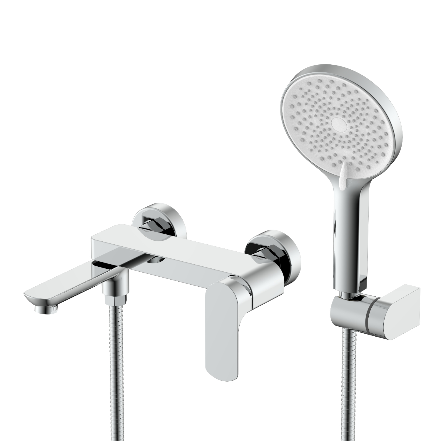 Смеситель для ванны Raglo R03.30. Цвет: хром. Материал: латунь. Управление: однорычажное. Механизм: керамический картридж. Излив: поворотный. Аэратор. Форма ручного душа: круглая. Количество режимов струи ручного душа: 3. Отверстия для монтажа: 2. Монтаж: на стену. Керамический картридж 35 мм - R500.35.01. Переключатель с керамическими пластинами (угол поворота – 90°) - R501.527. Аэратор - R540.02. Душевой шланг 1.5м - R402.15.
