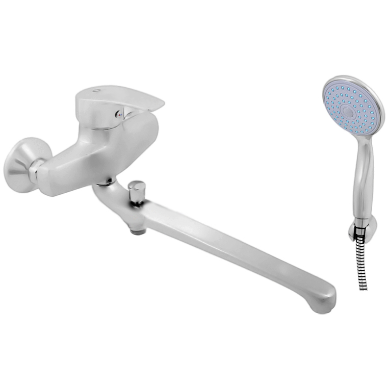 Смеситель универсальный Rav Slezak Kongo K057.5/1 однорычажный, с душевым гарнитуром, изготовлен из высококачественной латуни, которая исключает какую-либо коррозию. Длинный, 292 мм, поворотный, 360 градусов, излив. Металлическая рукоятка. Кнопочный переключатель душ/излив в изливе, с фиксацией. Аэратор Neoperl представляет собой ситечко антикальк с резиновой насадкой, специальная конструкция ситечка позволяет экономить расход воды и упрощает чистку известкового налёта. Качественный керамический картридж 40 мм Kerox, производство Венгрия, гарантирует долговечность и мягкий поток воды. Фиксированный настенный держатель для лейки. Пластиковый душевой шланг 1500 мм. В комплекте смеситель, шланг, душевая лейка, настенный держатель лейки и комплект крепления.