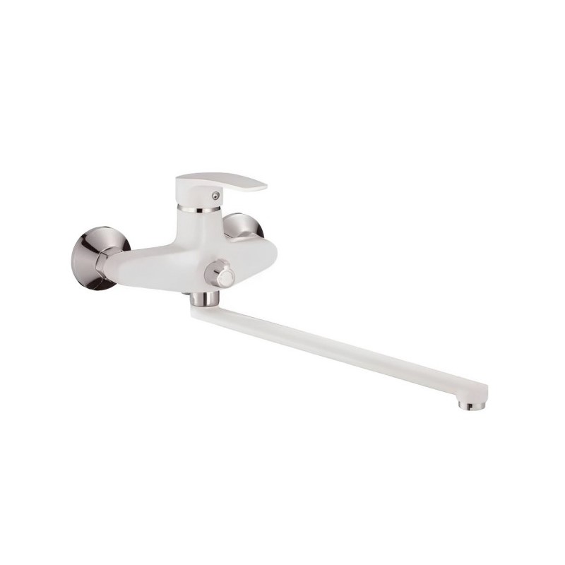 Смеситель для ванны Shevanik S5022F, белый/хром. Душевой гарнитур в комплекте: да. Управление: рычажное. Монтаж: настенный.