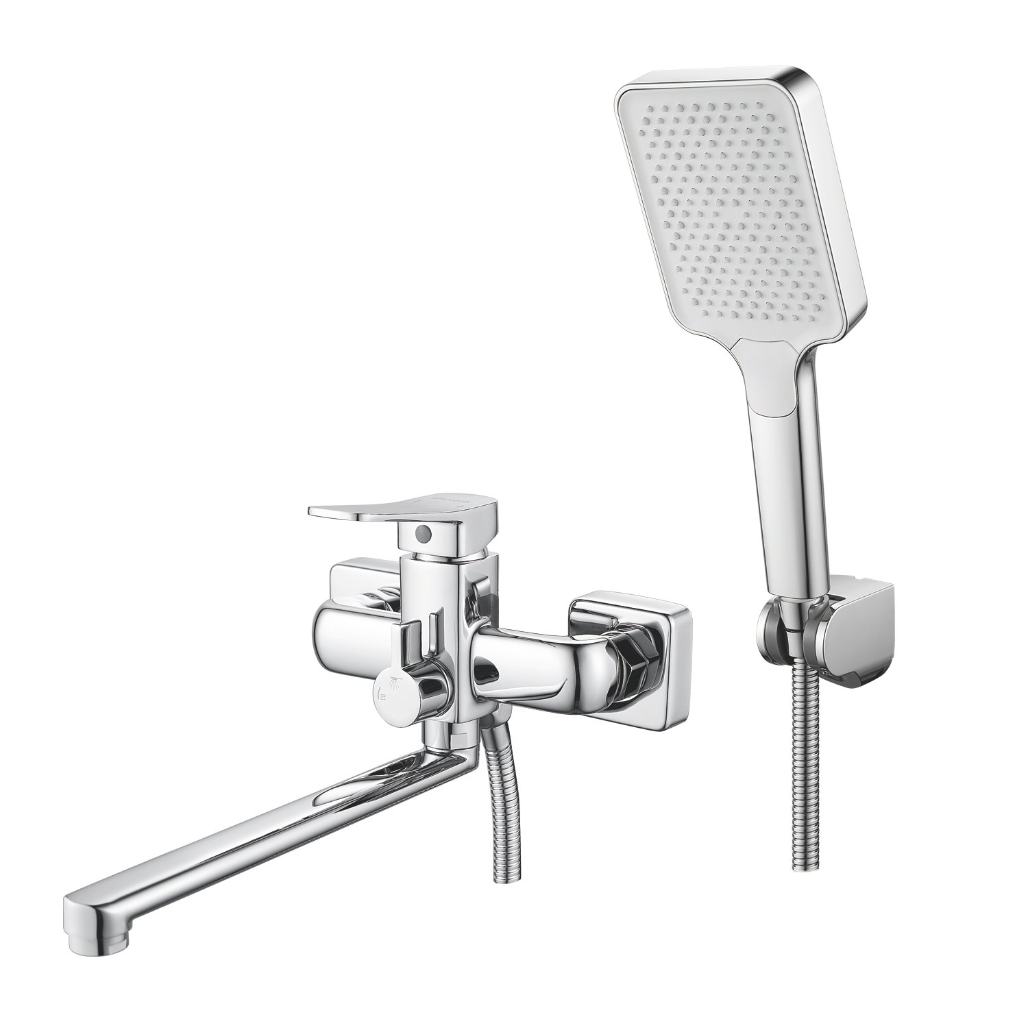 Смеситель для ванны Shevanik S9902 — стильное и функциональное решение для вашей ванной комнаты. Он имеет угловатую форму и изготовлен из высококачественной латуни, что гарантирует его прочность и долговечность. Рычажное управление и керамический картридж обеспечивают плавное и точное регулирование температуры воды. Смеситель оснащён длинным поворотным изливом и двухрежимной душевой лейкой из ABS-пластика. В комплекте поставки эксцентрики, настенный держатель душевой лейки и душевой шланг длиной 150 см. На смеситель предоставляется гарантия 5 лет.