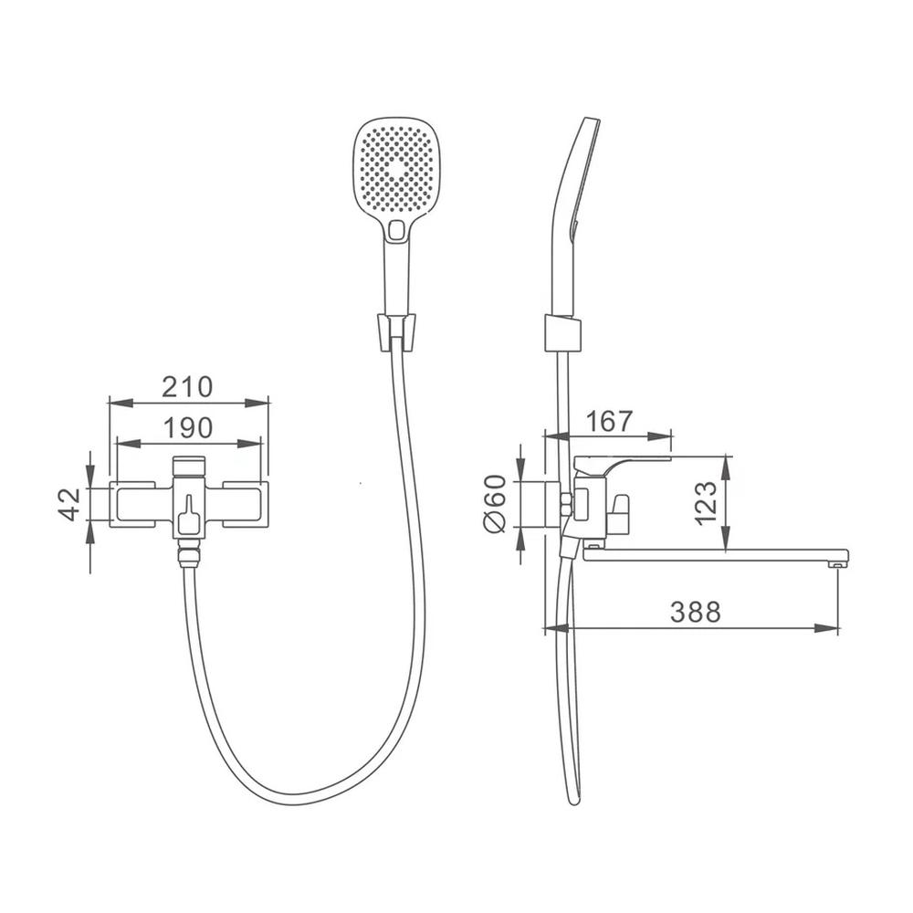 | Комплектация | Смеситель, шланг, душевая лейка, держатель душевой лейки, эксцентрики, отражатели |