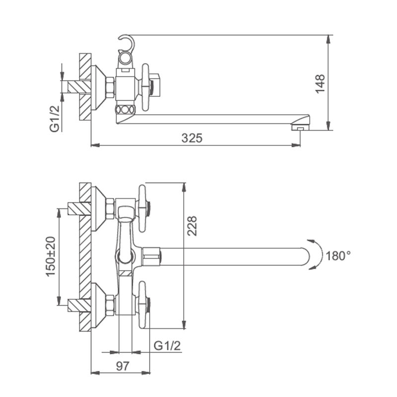 | Комплектация | Смеситель, шланг, душевая лейка, держатель душевой лейки, эксцентрики, отражатели |