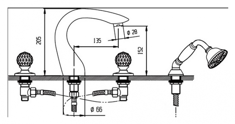 Смеситель на борт ванны Cezares Atlantis ATLANTIS-BVD-02-Sw Бронза кристаллы Swarovski