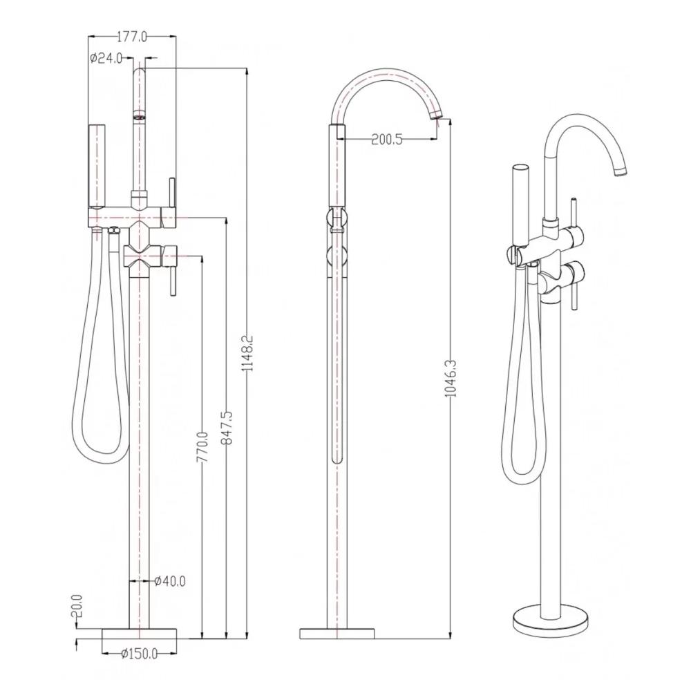 Закажите товар "Смеситель напольный для ванны Groсenberg GB900CR, хром"
