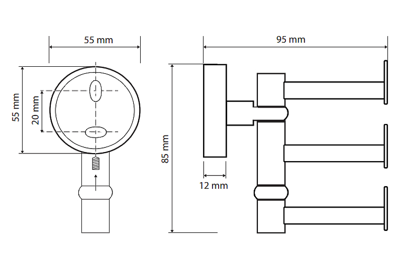 • Размер (ШхВхД): 55х85х95 мм.