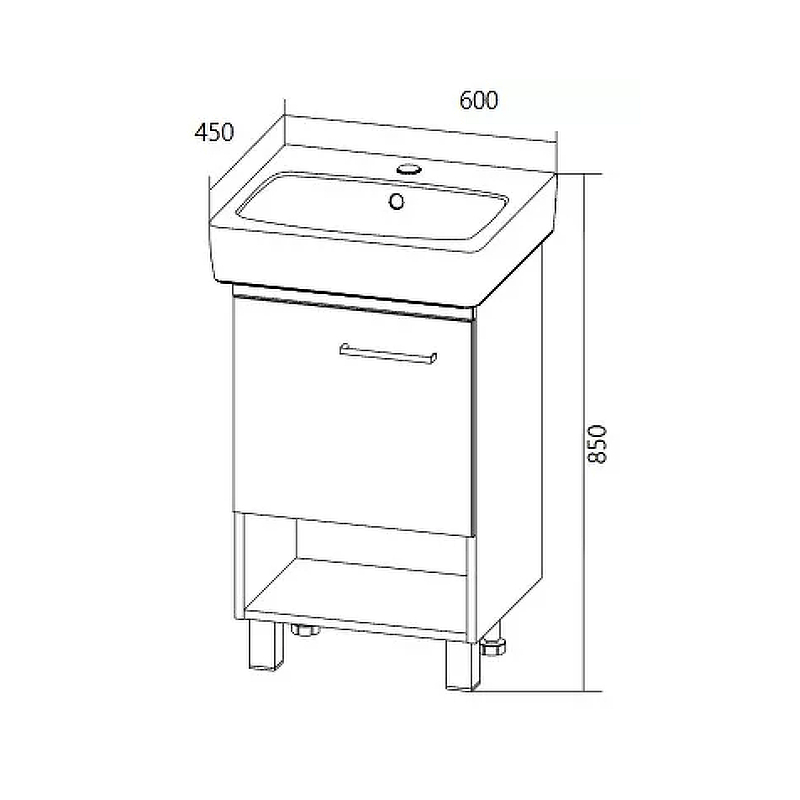 Тумба под раковину 1MarKa Tera 60 У76065 с одной распашной дверцей и открытой нижней полкой.