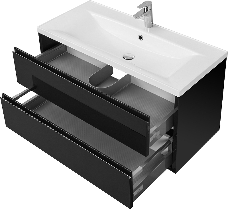 Закажите товар "Тумба под раковину Aquaton Римини 100 1A234601RN950 подвесная Черный глянец"