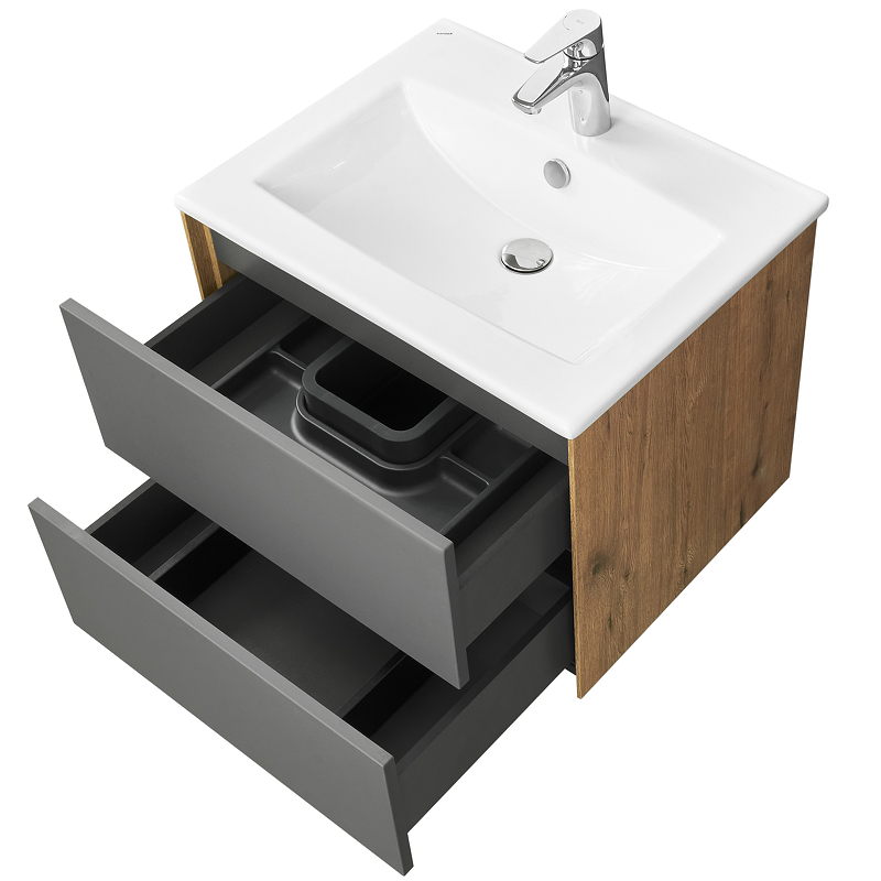 Закажите товар "Тумба под раковину Aquaton Сохо 60 1A258001AJA00 подвесная Дуб веллингтон Графит софт"